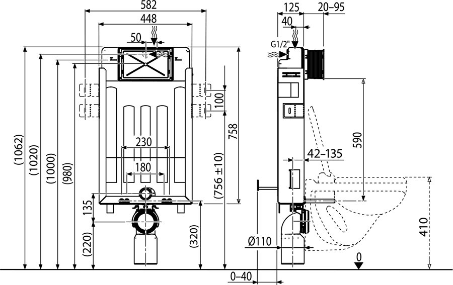 Základný modul pre závesné WC s pripojovacou roztečou 180 alebo 230 mm je určený k zamurovaniu a obloženiu. Je vhodný aj pre rekonštrukcie kúpeľní. Robustná konštrukcia inštalačného modulu zaisťuje veľkú nosnosť a je izolovaná proti oroseniu. Súčasťou výrobku je izolačná doska pre WC. Objem nádržky je 9 l. Úsporné nastaviteľné duálne splachovanie. Malé splachovanie je možné nastaviť v rozsahu 2,5–3,5 l. Napúšťanie vody je takmer nepočuteľné. Inštalačný modul môžete doplniť ovládacím tlačidlom.